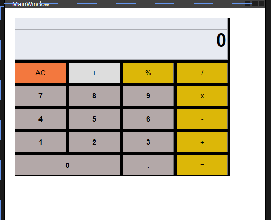 [도구 상자]에서 [Button] 과 [TextBox] 를 이용하여 계산기 모양을 만들었다. 추가로 속성을 통해 색깔과 글씨 모양을 부여하였다. 이제 [Button], [TextBox]에 이름을 부여하고 계산기는 클릭했을 때 작동하므로 [Button] 같은 경우 이벤트 함수 이름을 부여해준다.