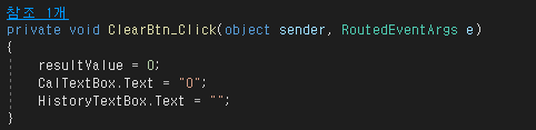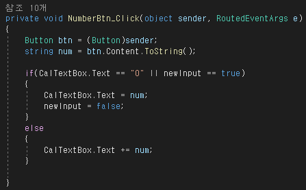 위에 참조를 보면 0~9까지 Button이 NumberBtn_Click 함수를 참조하고 있기때문에 저렇게 표시됨을 알 수 있다.
