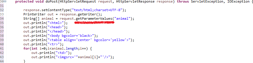 예를 들어 배열을 받았을 때 처럼, 하나의 파라미터 이름으로 여러 개의 값이 전송되어 올 때는 HttpServletRequest 인터페이스에서 제공되는 String[] getParameterValues(String paramName) 메서드를 사용해서 처리해야 한다.
