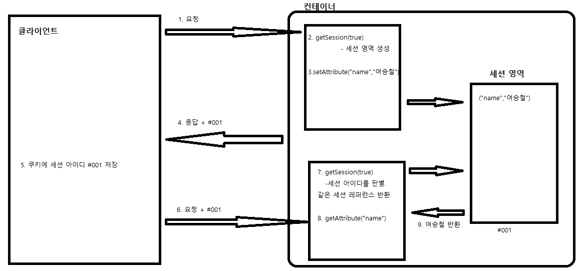 session.setAttribute("name","여승철"); - HttpSession.getAttribute("Key")