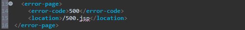 이 방법은 JSP 페이지에서 빈번하게 발생하는 에러 번호별로 에러 처리 페이지를 설정하는 방법이다. 서버의 페이지 코드에서 오류는 대부분 500번 오류이므로 500번 오류 번호에 대해서 에러 페이지를 지정한다.