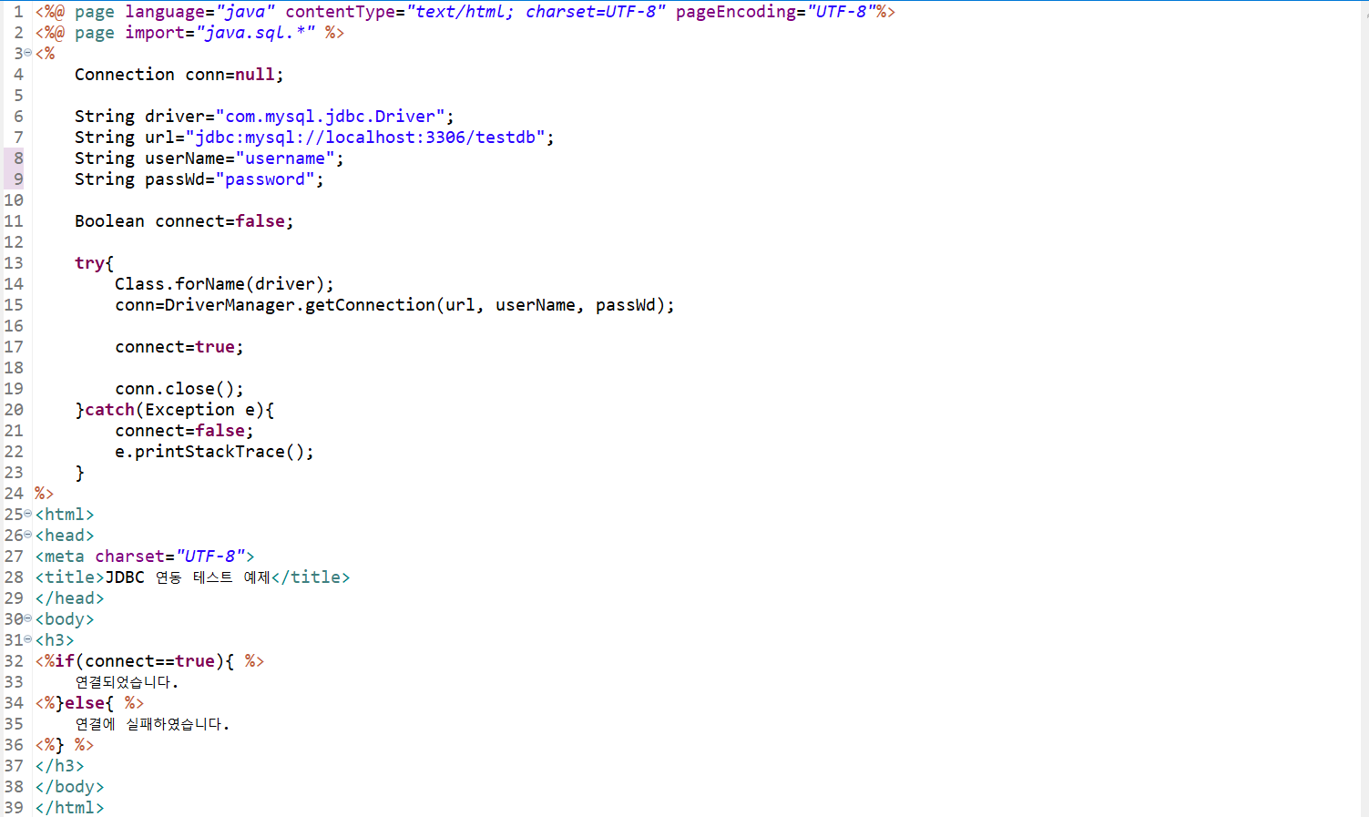 7번째 줄: "jdbc:mysql://localhost:3306/접속할 DB명"