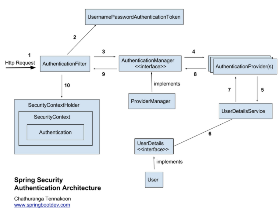 - 생성된 `UsernamePasswordAuthenticationToken`은`AuthenticationManager`에 전달됩니다.