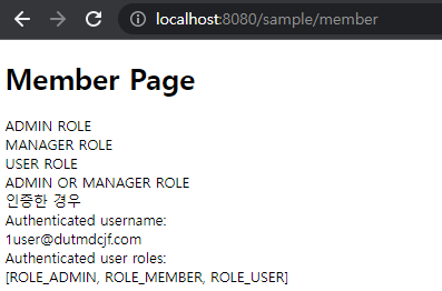 <div sec:authorize="hasRole('MEMBER')">MANAGER ROLE</div>