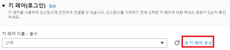 만약 키 페어가 없다면 새로 생성해줍니다.