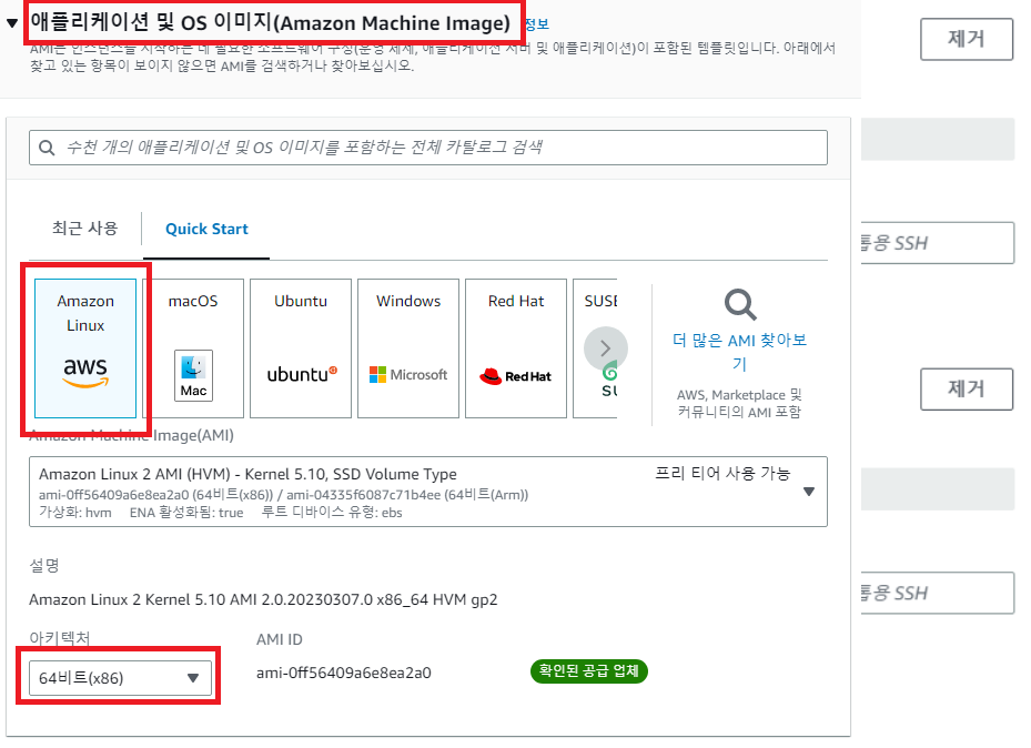 저는 CentOS 기반인 Amazon Linux를 선택해주었습니다.
