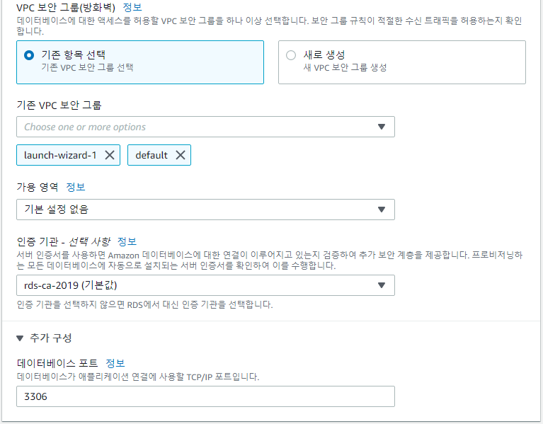 RDS를 생성하고 기존 EC2와의 연결을 설정하는 부분입니다.