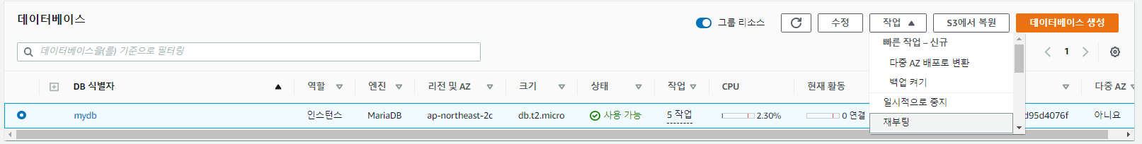 RDS를 재부팅해줍니다.