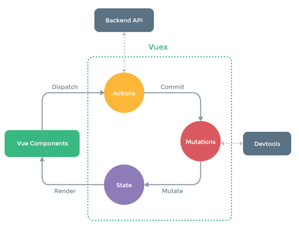 - `actions`: 비동기적인 작업을 처리하기 위해 사용되는메서드들을 정의합니다. 각각은 `commit`을 통해 mutations을호출하여 상태값을 변경합니다.