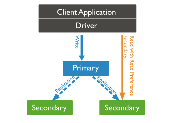 Primary 노드는 Read / Write 요청을 모두 처리할 수 있지만, 읽기 요청 분산 처리하기 위해 Primary 노드에 Read 요청을 보내는 것이 아닌 Secondary 노드에 읽기 요청을 보낼 수 있습니다. 또한 여러 Secondary 노드가 동시에 읽기 작업을 처리할 수 있어 읽기 작업의 부하도 분산시킬 수 있습니다.