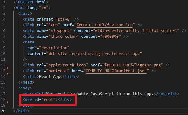 1. public/index.html ← React 애플리케이션 진입점 2. src/index.js ← ReactDOM을 사용하여 실제 DOM에 렌더링하는 파일