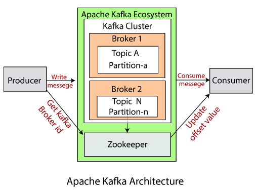 - Kafka Cluster의 Broker들은 Zookeeper를 통해 서로의 존재 및 메타데이터 정보를 공유하고, 이를 통해 Kafka의 메타데이터, 브로커 상태, 토픽 등을 관리할 수 있습니다.