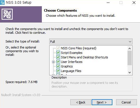 ex) NSIS 배포 인스톨러에서는 추가 도구, 플러그-인, 예제 및 기타 리소스를 선택적으로 설치할 수 있다.